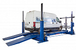 г/п. 10 тонн. Четырехстоечный. Электромеханический. Для ремонта грузовых автомобилей отечественного и импортного производства и автобусов на любой ровной площадке. Привод червячный редуктор, с концевыми выключателями нажимного действия, ограничивающими ход каретки. По отдельному заказу комплектуется установочными рамами. Поставляется в 2 вариантах Стандарт (в помещение) и ТЗ (Для эксплуатации на улице).