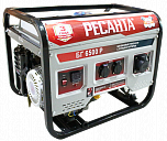 Мощность 5 кВт. Напряжение 220В. Генератор оснащен бензиновым двигателя, имеющего воздушное принудительное охлаждение, электронное зажигание, ручное пусковое устройство, электростартер и топливный бак на 22 литра, а так же однофазной синхронной генераторной машиной (альтернатором). Двигатель вырабатывает мощность в 14 л.с. Запас топлива позволяет агрегату бесперебойно работать на протяжении порядка 10-ти часов. Имеется функция сварки + розетка для потребителей 220 В и клеммы для потребителя 12 В, контроль за уровнем масла, защита от короткого замыкания.