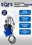 Нагнетатель пневматический, для густой смазки. Комплект оснащен тележкой для бочек 20-60 кг., пневматический насос для смазки 50:1 производительностью 800гр/мин, мембрана и крышка для солидолонагнетателя, шланг 4 м, раздаточный пистолет с наконечником. При давлении воздуха 6-8 Атм давление смазки 400 Атм максимально. Колёса: 2 прямых. Масса: 16 кг.