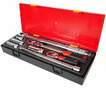 Набор удлинителей в прочном презентабельном боксе 8 предметов. В комплекте: динамометрический ключ 3/8 с диапазоном затяжки 10-80Н/м; трещотка (резиновая рукоятка) - 1 шт; трещотка укороченная (резиновая рукоятка) - 1 шт; удлинитель плавающий под ключ 3/8, 1-3/4, 10 - 2 шт; головка для свечей зажигания 3/8 (с пружинным фиксатором) 14, 16, 21 мм. - 3 шт.