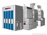 Данная зона подготовки имеет боковой забор воздуха и обладает функцией притока, вытяжки и рециркуляции воздушных масс. Также имеется функция поддержания заданной температуры окраски – до 25 град.