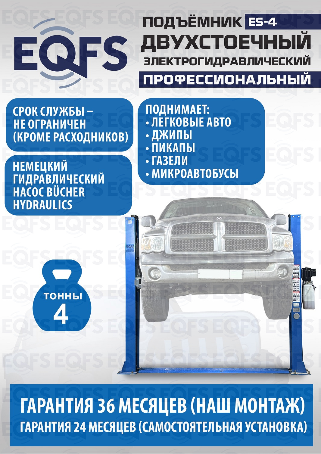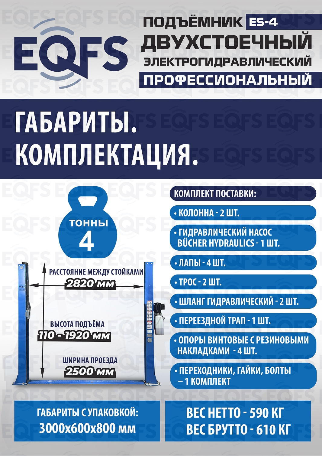 ES-4 Подъемник 2-хст. г/п 4т (серая каретка)