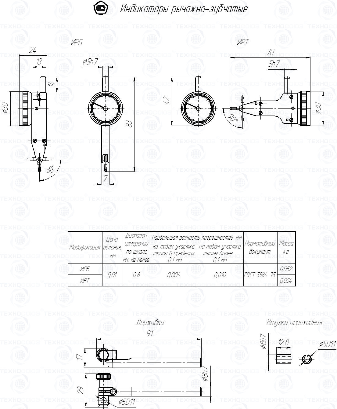 Пример условного обозначения индикатора рычажно-зубчатого бокового типа ИРБ - Индикатор ИРБ ГОСТ 5584-75.