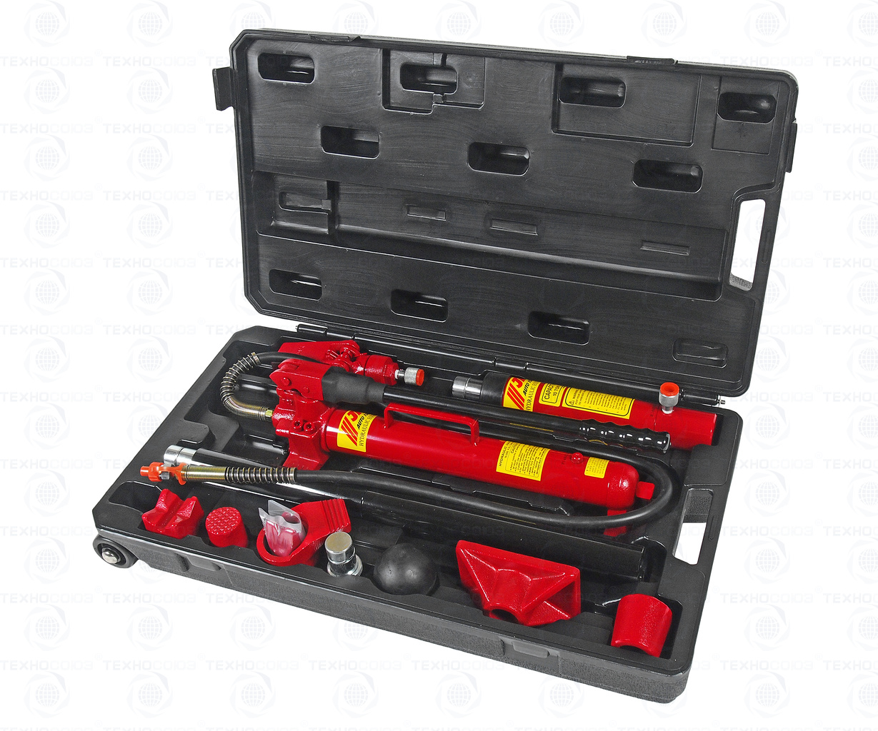 • Набор гидравлического инструмента представляет собой компактный и удобный в эксплуатации комплект из гидравлического насоса (1) и гидравлического цилиндра (3), с помощью которых создается рабочее усилие; удлинителей для упрощения работы (5-8); специальных фигурных соединяющих насадок (11-16), для надежного упора в детали кузова.