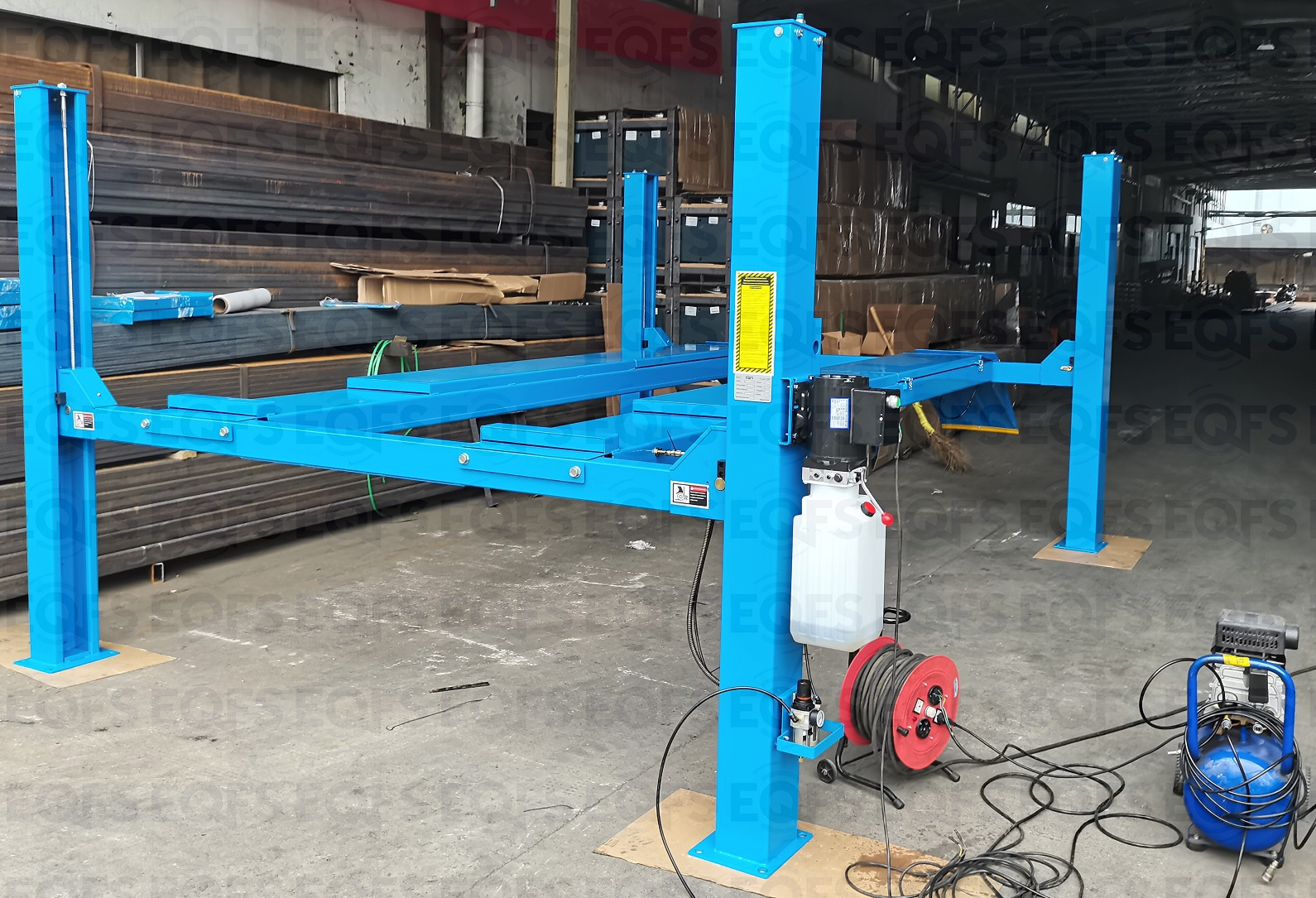 Комплект четырехстоечный подъемник для сход-развала ВСЕХ авто г/п.-4т. с ручной траверсой. Гарантия 2года. В комплекте: анкерные болты 16шт. + противооткатные ограничители 2шт. + противооткатные упоры 2шт. Для любых стендов сход-развал - 3D, лазерных, инфракрасных, кордовых. ВАЖНО!!! ДЛИНА ПЛАТФОРМЫ - 4130мм. — это позволяет прокатывать авто на подъёмнике. Многие стенды развала требуют прокатки!!! Подъём 1850мм, Между колоннами 2775 мм. Усиленный — 960кг металла.